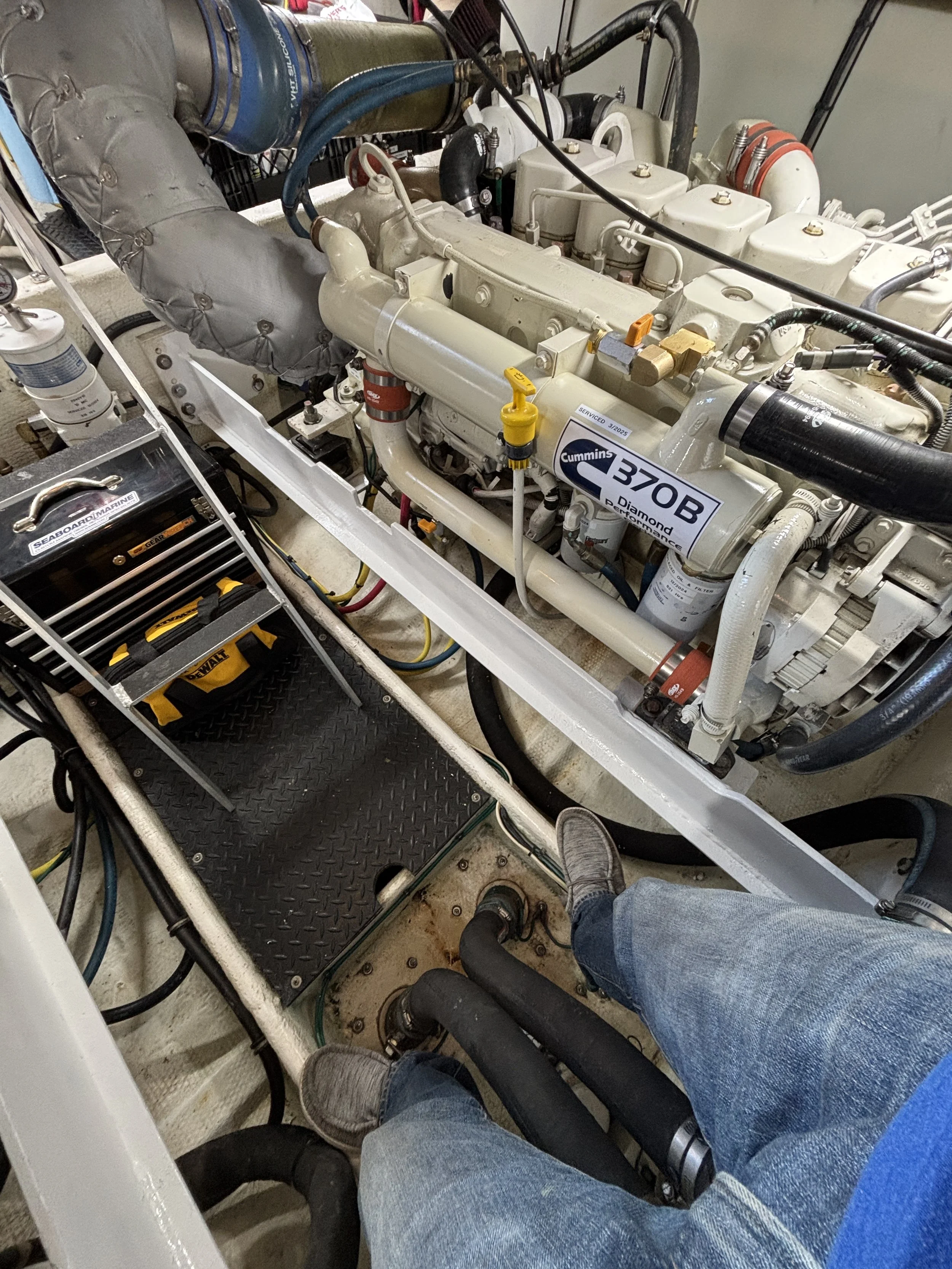 Nice and shiny engine room - freshly cleaned and painted cooling components and engine support rails.